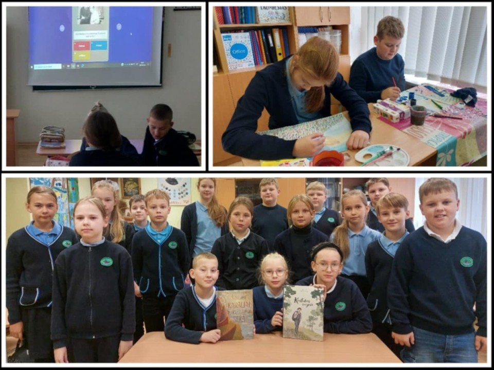 Rugsėjo 22 d. 4e klasės mokiniai (mokytoja Rūta Tamašauskienė) šventė Čiurlionio 150-ąjį gimtadienį. Visą savaitę klasėje vyko integruotos veiklos. Klausydamiesi simfoninės poemos „Jūra“ mokiniai išgirdo, kaip Čiurlionį Tarptautinėje kosminėje stotyje pasveikino NASA astronautas Džonis Kimas. Dailės pamokos metu žiūrėdami į dailininko paveikslus 4e klasės mokiniai piešė knygų skirtukus. Vaikams buvo smalsu sužinoti apie M. K. Čiurlionio gyvenimą ir jo paveikslus. Susėdę grupelėmis skaitė Mildos Pleitaitės ir Kazimiero Momkaus knygas „Kastukas sugrįžo“ ir „Šiandien Karaliai mums pasakas seka“. Vyko Kahoot programėle pateikta viktorina „Ką sužinojau apie M. K. Čiurlionį?".