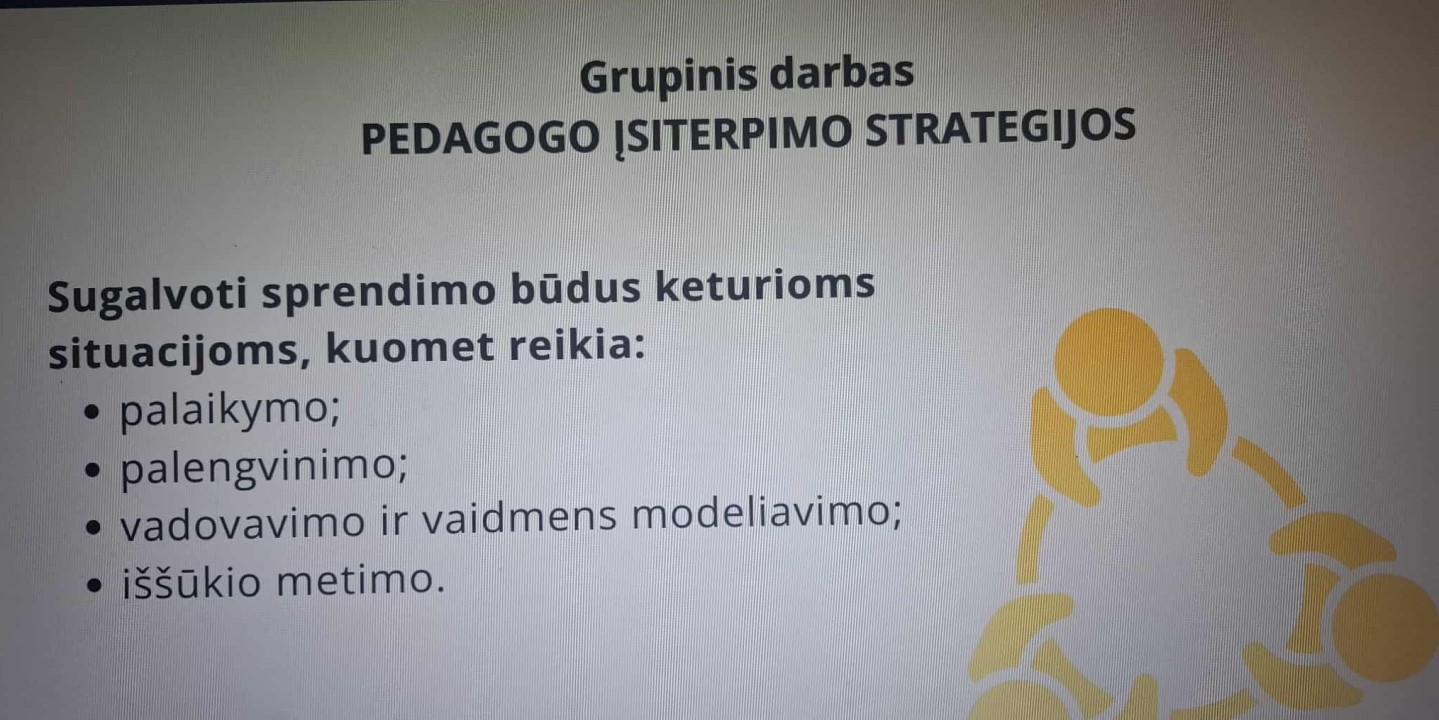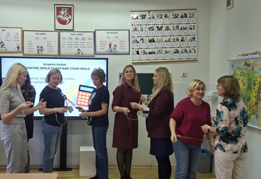 Spalio 15 d. mokyklos pedagogai dalyvavo tęstiniuose mokymuose tema „STEAM taikymas pradiniame ugdyme“, kuriuos vedė lektorė Indrė Neimantė. Užsiėmimų metu gilinomės į įvairius būdus, kaip integruoti gamtos mokslus, technologijas, inžineriją, menus ir matematiką į pradinio ugdymo procesą.