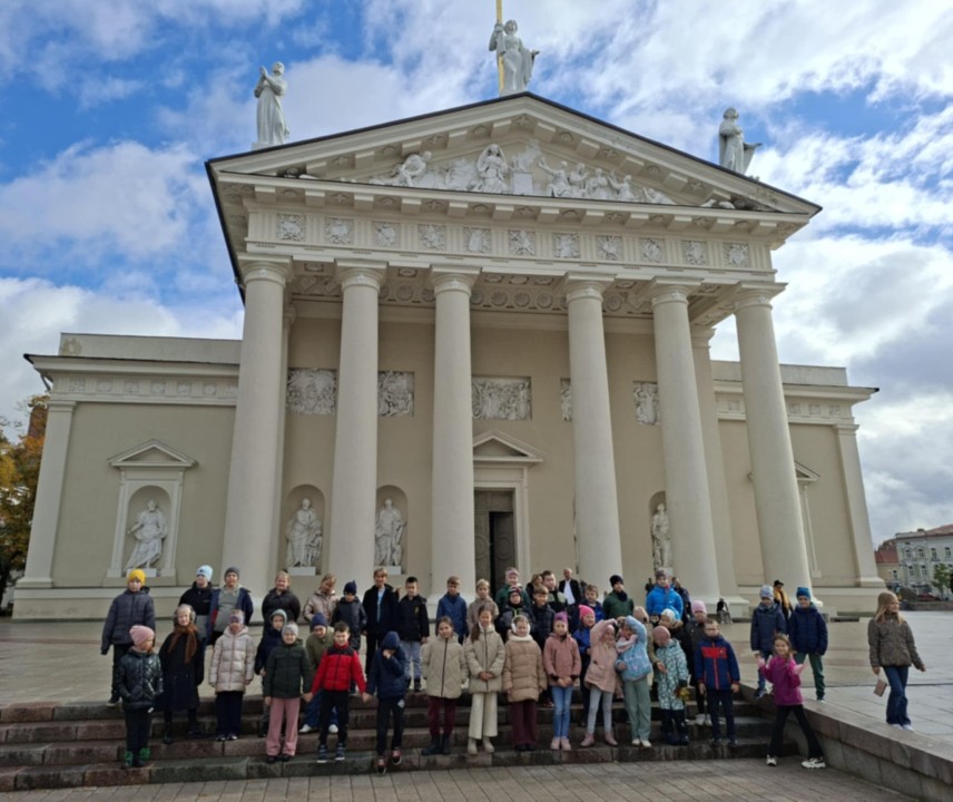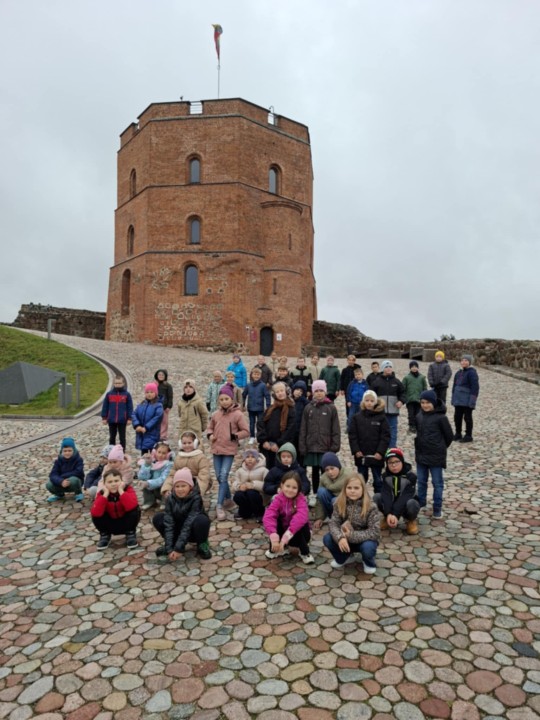 Vėliau kopė į Gedimino kalną. Nors laiptai buvo statūs, visi džiaugėsi, kai pasiekė viršų ir pamatė įspūdingą Vilniaus panoramą. Antrokai aplankė Katedros aikštę, Prezidentūrą. Kelionė visiems labai patiko. Vaikai grįžo kupini įspūdžių ir naujų žinių apie savo šalies sostinę.
