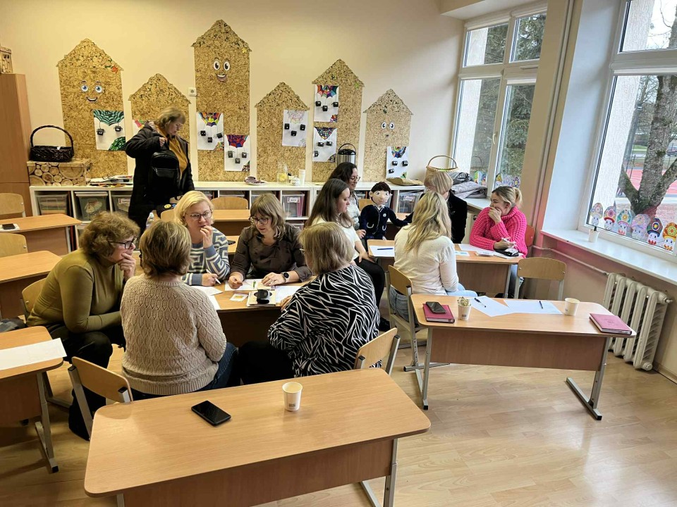 Mokymų dalyviai kartu ieško atsakymų į klausimus, kaip kurti stiprią ir įkvepiančią mokyklos viziją, kaip efektyviai planuoti veiklas ir įgyvendinti strateginius tikslus.