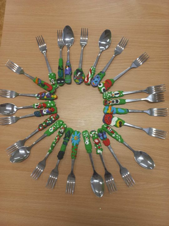Edukacijos metu susipažino su modelino savybėmis ir darbo technika. Pasitelkę savo kūrybingumą ir improvizaciją sukūrė savo meninius dirbinius ant metalinių šaukštelių ar šakučių. Mokiniai patyrė sėkmės jausmą, džiaugsmą dėl savo darbo rezultatų.