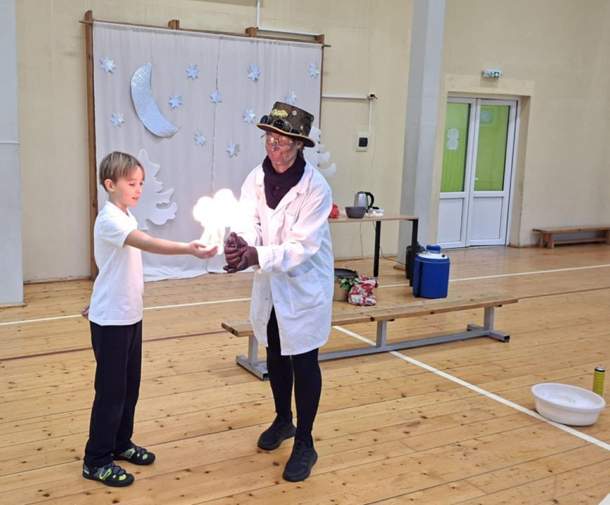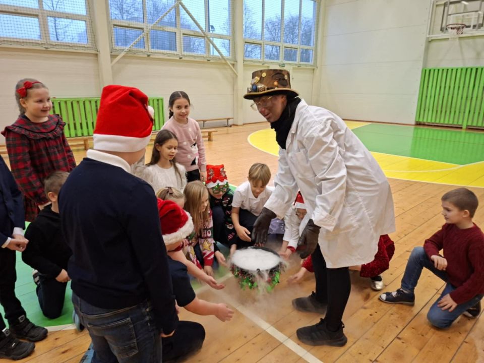 Gruodžio 19 dieną 2b, 2c ir 2e klasių mokiniai leidosi į įdomų edukacinį nuotykį su piktuoju mokslininku ir Kalėdų Seneliu. Vaikai aktyviai dalyvavo eksperimentuose, smagiai žaidė ir už puikų dalyvavimą buvo apdovanoti Kalėdų Senelio dovanomis. Tai buvo kupina džiaugsmo ir atradimų diena!