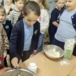 Gruodžio 23 dieną antrų klasių mokiniai susipažino su Kūčių papročiais ir tradicijomis, sužinojo apie senovinius burtus bei jų reikšmes. Vaikai su dideliu susidomėjimu klausėsi pasakojimų ir aktyviai dalyvavo veiklose. Ypatingo džiaugsmo suteikė Kalėduko paskirtos užduotys, kurias antrokai stropiai atliko. Pamokų pabaigoje mokiniai patys kepė kūčiukus, o klasę užpildė gardus kepinių kvapas. Ši integruota diena vaikams suteikė daug džiugių emocijų ir naujų žinių.