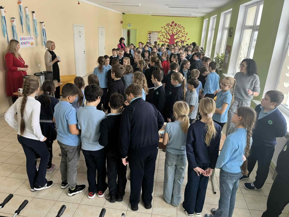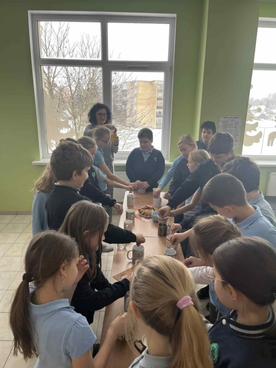 „Čia - puodelis, čia - arbata, bet svarbiausia - draugas šalia!“ Šiuo šūkiu sausio 9 dieną trečių klasių mokiniai netradiciškai užbaigė savaitę. Vaikai plėtė žinias apie arbatą, diskutavo, atliko kūrybines užduotis. Visi trečiokai ir jų mokytojos atsinešė puodelius, juk skaniausia arbata - iš savojo. Į puodelį įdėję žiupsnelį gerumo, saują draugiškumo ir šaukštelį atsakingumo mėgavosi kvapnia žolelių arbata, kurią kiekvienam įpylė mokyklos direktorė. Ačiū mokyklos virėjoms už skanią arbatą.