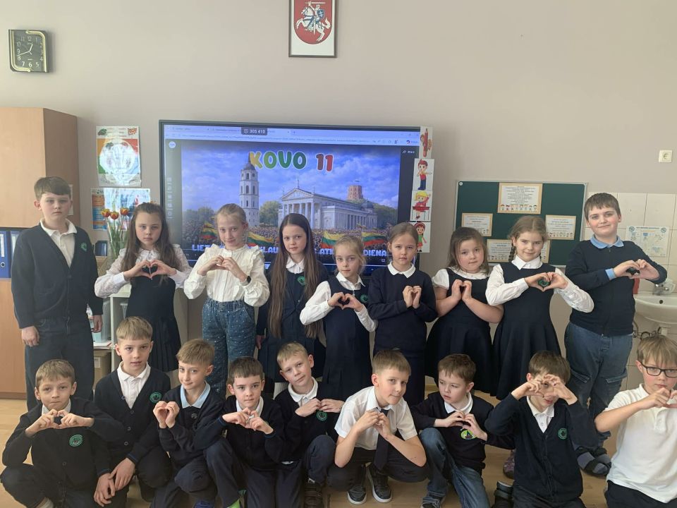 Artėjant Lietuvos nepriklausomybės atkūrimo dienai kovo 10 d. antrų klasių mokinių grupėje vyko graži šventė, skirta Kovo 11-ajai paminėti. Renginys prasidėjo iškilmingai – vaikai sugiedojo Lietuvos valstybės himną. Vėliau mokiniai deklamavo eilėraščius apie Lietuvą, jos grožį, laisvę ir gimtinės meilę. Šventinę nuotaiką dar labiau sustiprino skambios dainos apie mūsų šalį. Šventės metu mokiniai taip pat dalyvavo smagioje viktorinoje. Antrokai atsakinėjo į klausimus apie Lietuvą, jos simbolius, miestus ir svarbius istorinius įvykius. Kūrybinėje veikloje mokiniai piešė pašto ženklą, skirtą Lietuvai. Jų darbuose atsispindėjo Lietuvos vėliava, gamta, miestai ir kiti šalį simbolizuojantys vaizdai.