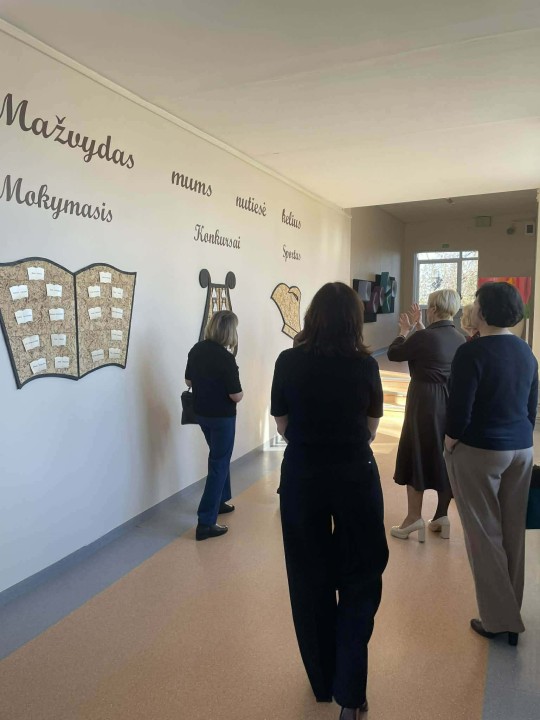 Atvykusius dalyvius šiltai pasitiko gimnazijos direktorė Dalia Mačiulaitienė. Ji supažindino su mokyklos erdvėmis, aprodė jaukias ir šiuolaikiškas klases, ikimokyklinio ir priešmokyklinio ugdymo grupes. Susitikimo metu buvo pasidalinta gimnazijos bendruomenės įgyvendinamais projektais, pasiekimais ir ateities planais.
