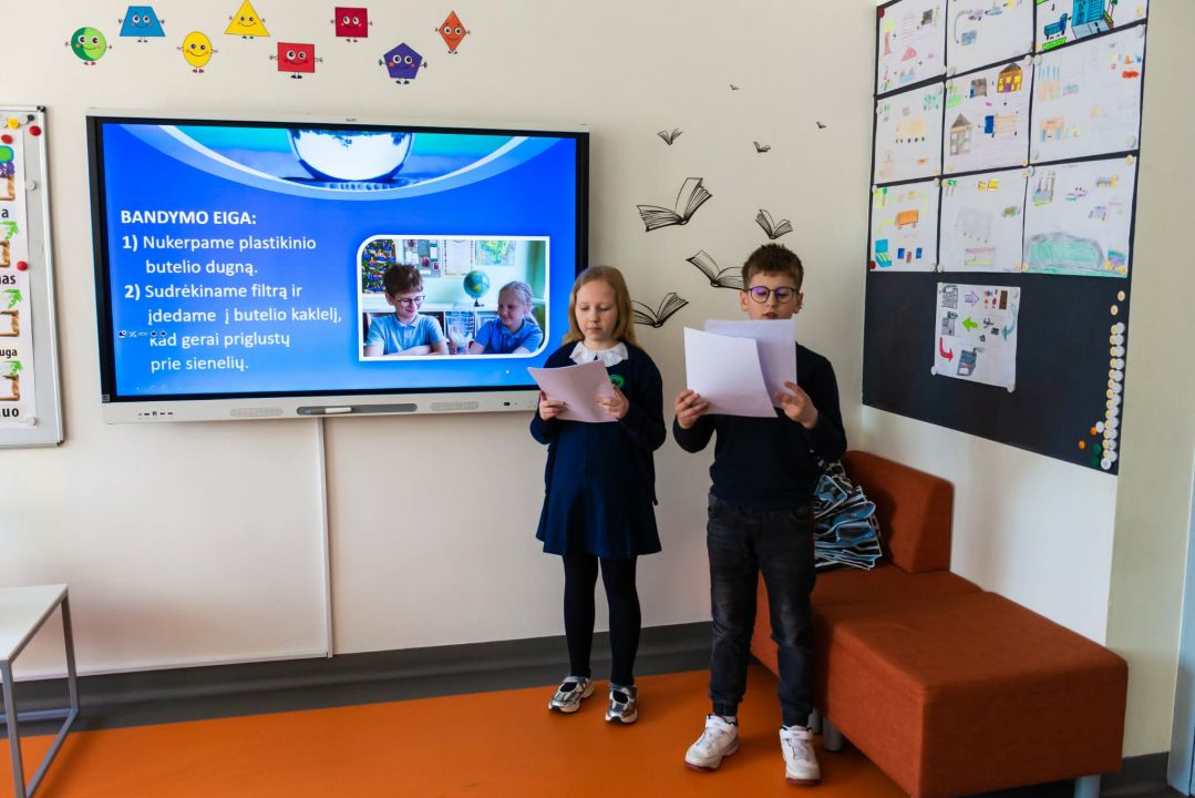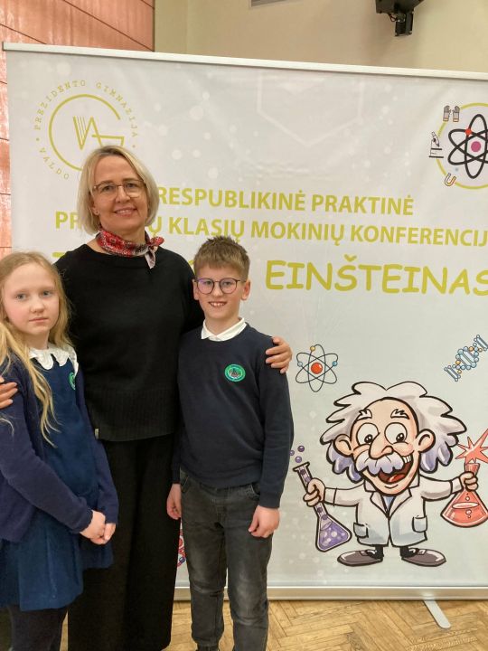 Balandžio 9 dieną 3b klasės mokiniai Amelia Sinicaitė ir Pranas Žvirblis (mokytoja Lena Vaitkūnienė) dalyvavo Kauno Prezidento Valdo Adamkaus gimnazijoje jau ne vienerius metus vykstančioje respublikinėje „Jaunojo Einšteino“ konferencijoje. Į renginį susirinko smalsūs 1–4 klasių mokiniai iš visos Lietuvos. Jie demonstravo įvairius eksperimentus, pristatė savo projektus, diskutavo ir bendravo. Amelia ir Pranas pristatė tyrimą – bandymą „Mažasis vandens valymo įrenginys“.