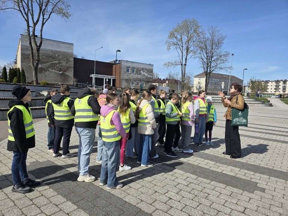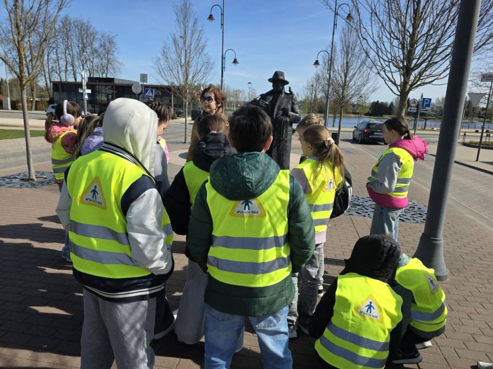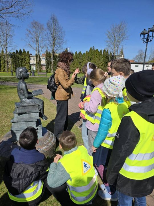Balandžio 22 dieną 4b klasės mokiniai (mokytoja S. Paliukėnienė), lydimi Širvintų turizmo informacinio centro gidės Aušros, keliavo po Širvintas. Ketvirtokai aplankė žymiausias miesto vietas: skulptūras „Širvinta“, „Skaitanti mergaitė“, rašytojo Igno Šeiniaus skulptūrą bei paminklą žuvusiems už Lietuvos laisvę. Gidė papasakojo apie Širvintų miesto ir Širvintos upės pavadinimų kilmę, kartu su mokiniais aptarė jiems jau gerai pažįstamas Briedžių tako medžio drožinių skulptūras. Prie Širvintų Šv. Arkangelo Mykolo bažnyčios ekskursijos vadovė įdomiai pristatė bažnyčioje saugomą, stebuklingu laikomą šv. Filomenos paveikslą, garsėjantį malonėmis. Jaunimo parke pradinukai susidomėję klausėsi pasakojimo apie palyginti neseniai pastatytą, tačiau jau spėjusią tapti širvintiškių ir miesto svečių pamėgtu traukos objektu rotondą. Atokvėpio valandėlę mokiniai smagiai praleido lauko batutų ir žaidimų aikštelėje. Ši ekskursija – viena iš jaunimo festivalio „Kultūros ratas“ projektinių veiklų, padėjusi mokiniams dar geriau pažinti savo krašto istoriją ir kultūrą. Su ketvirtokais po Širvintas kartu keliavo ir mokyklos talismanas Pranukas Pradinukas.